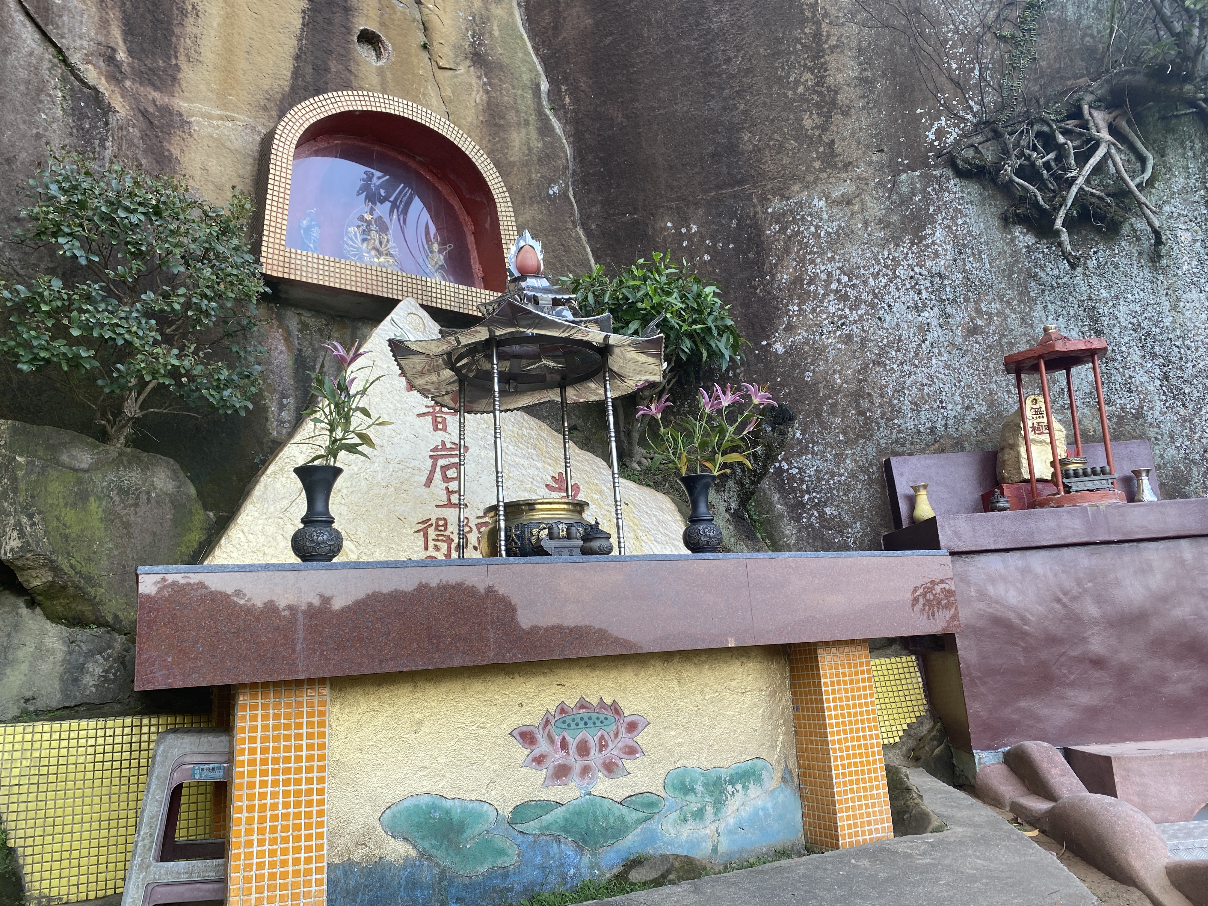 彌陀園彌陀園的位置不在正規步道上,這裡算是在象山後山,永春崗最靠山壁的地方,這裡有著許多的石雕,還有很巨大的岩體,真的很壯觀,如果從象山想來此處,必須先走到永春崗平台,往山頂的方向沒多久,可以看到彌陀園的石雕,順著路徑走進來,你會感覺來到後花園,邊欣賞岩石邊前進,最後可以走到天寶聖道宮。posted in September 21st, 2022海拔100 m展望無 區域象山 分類 :象山環小徑