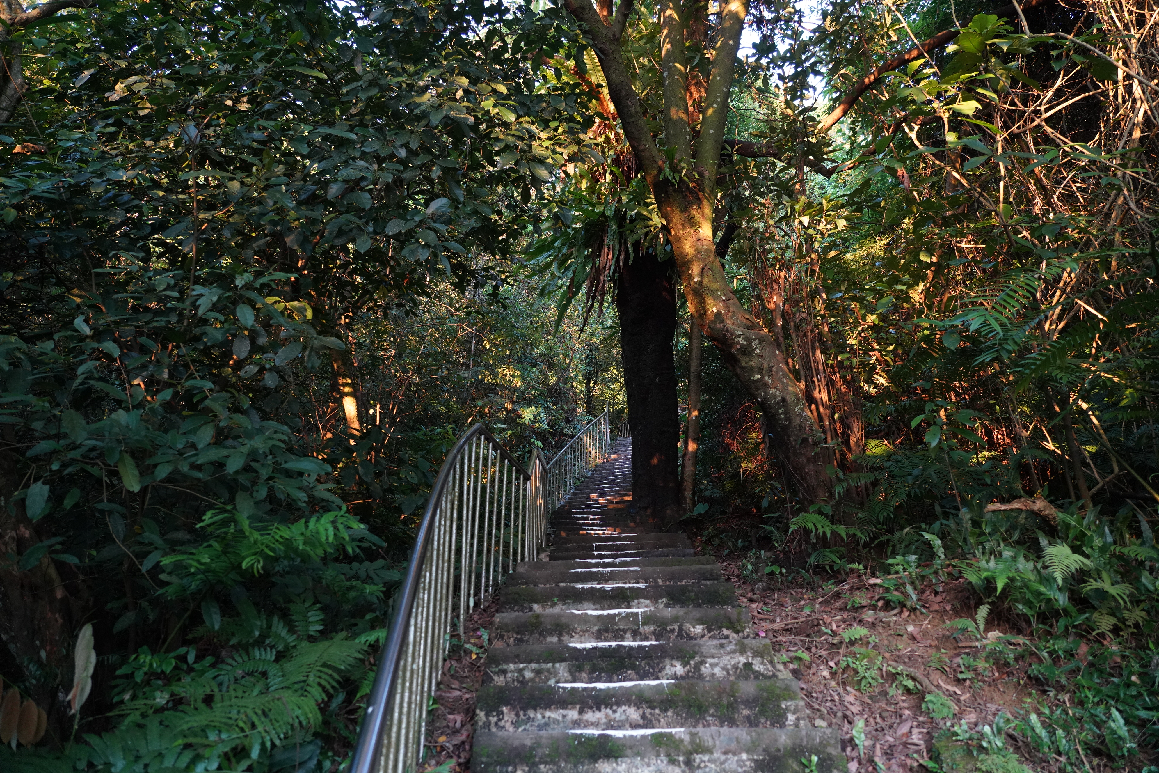 松山慈惠堂跟北台 慈惠堂是不一樣的地方,人氣也落差很大,北台慈惠堂在和興礦坑旁邊,一進登山口就是一大串的陡坡上去,大約要往上走十分鐘才能到拇指山步道。