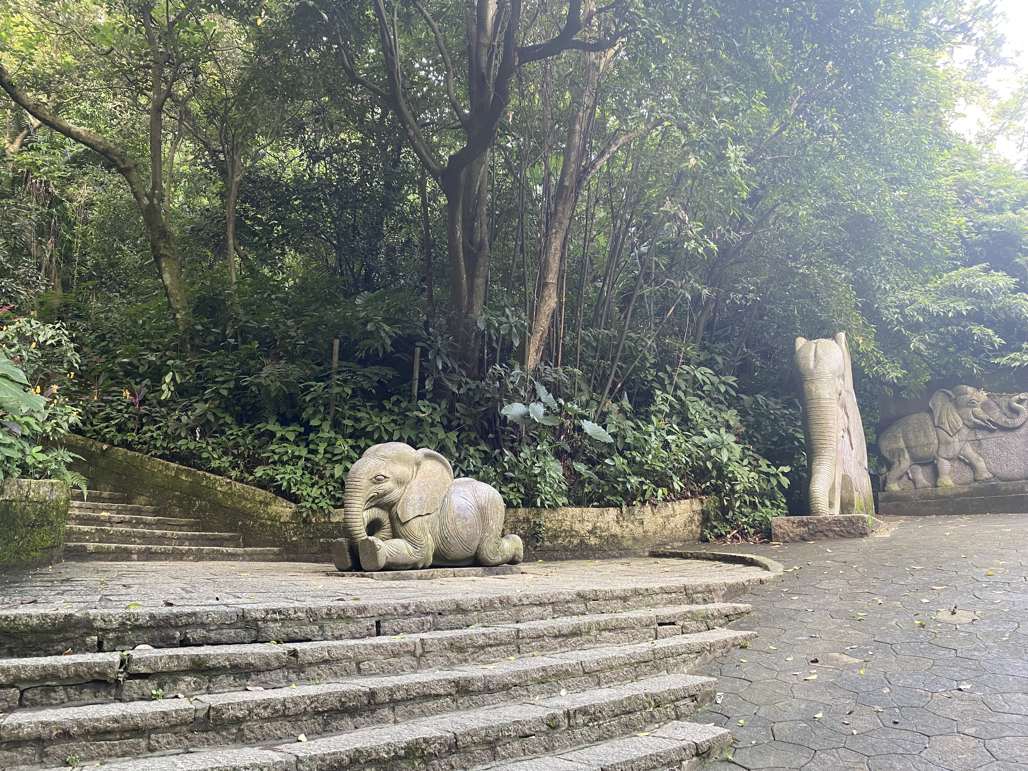 市療登山步道起點在台北市立療養院的後方,這裡登山口是象山唯一有大象雕像的地方,早期大象雕像是在靈雲宮登山口旁邊,後來因為那邊要蓋新美齊象山豪宅,才拆掉裝來這邊,這裡登山口每次經過,都覺得有股仙氣,森林林相非常好,感覺就很舒服。