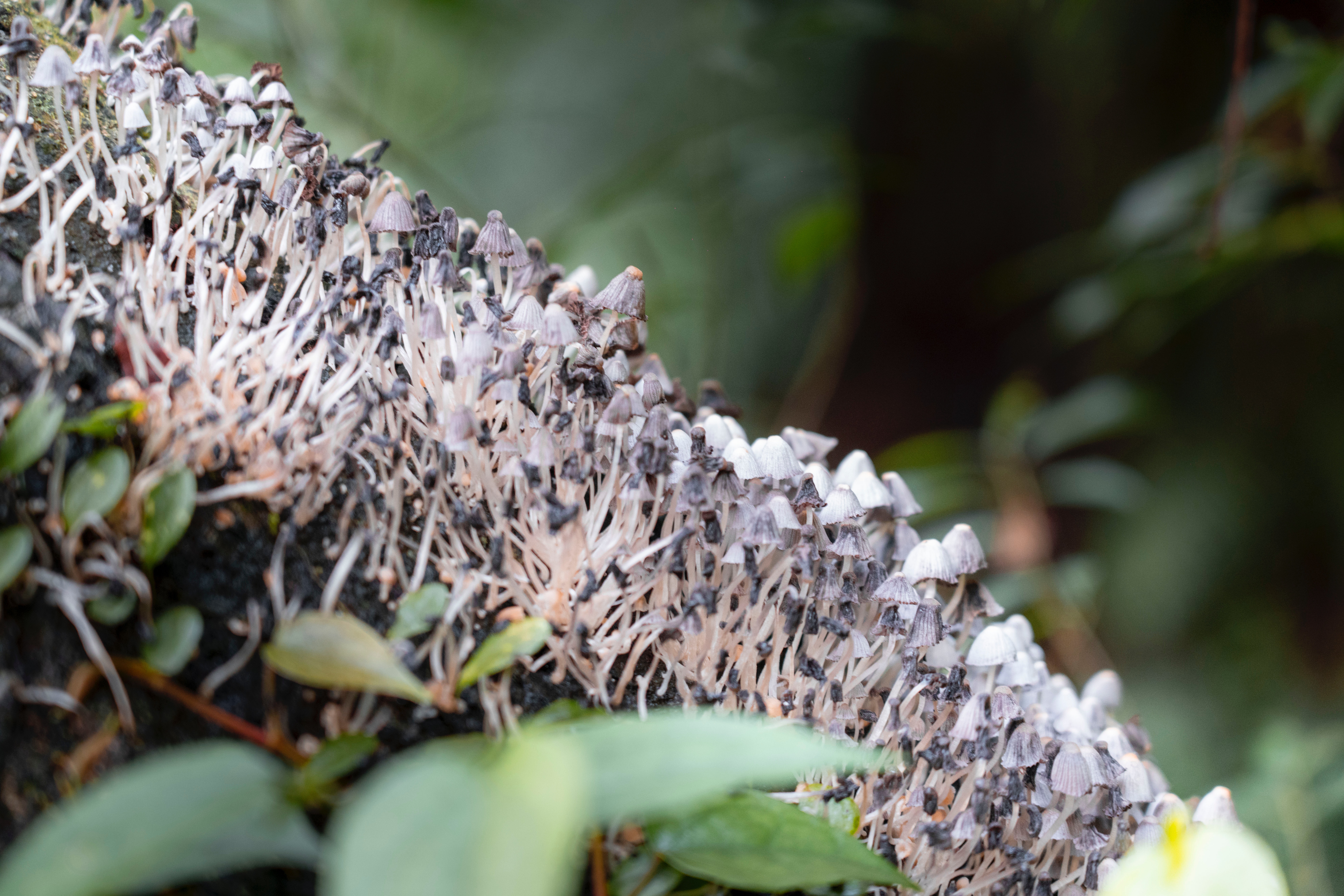 今年發現象山一線天步道上,出現了一種奇特的菇類,拍照後經網友告知,得知為簇生鬼傘,又稱小鋼盔,小仙女帽,無毒,還蠻可愛的,一次都 長一整片,但是他壽命非常短,從出生到死亡大概只有一天時間,他會自體溶化,將溶化的汁液到昆蟲身上,帶去別的地方繁衍下一代,相當的神奇。