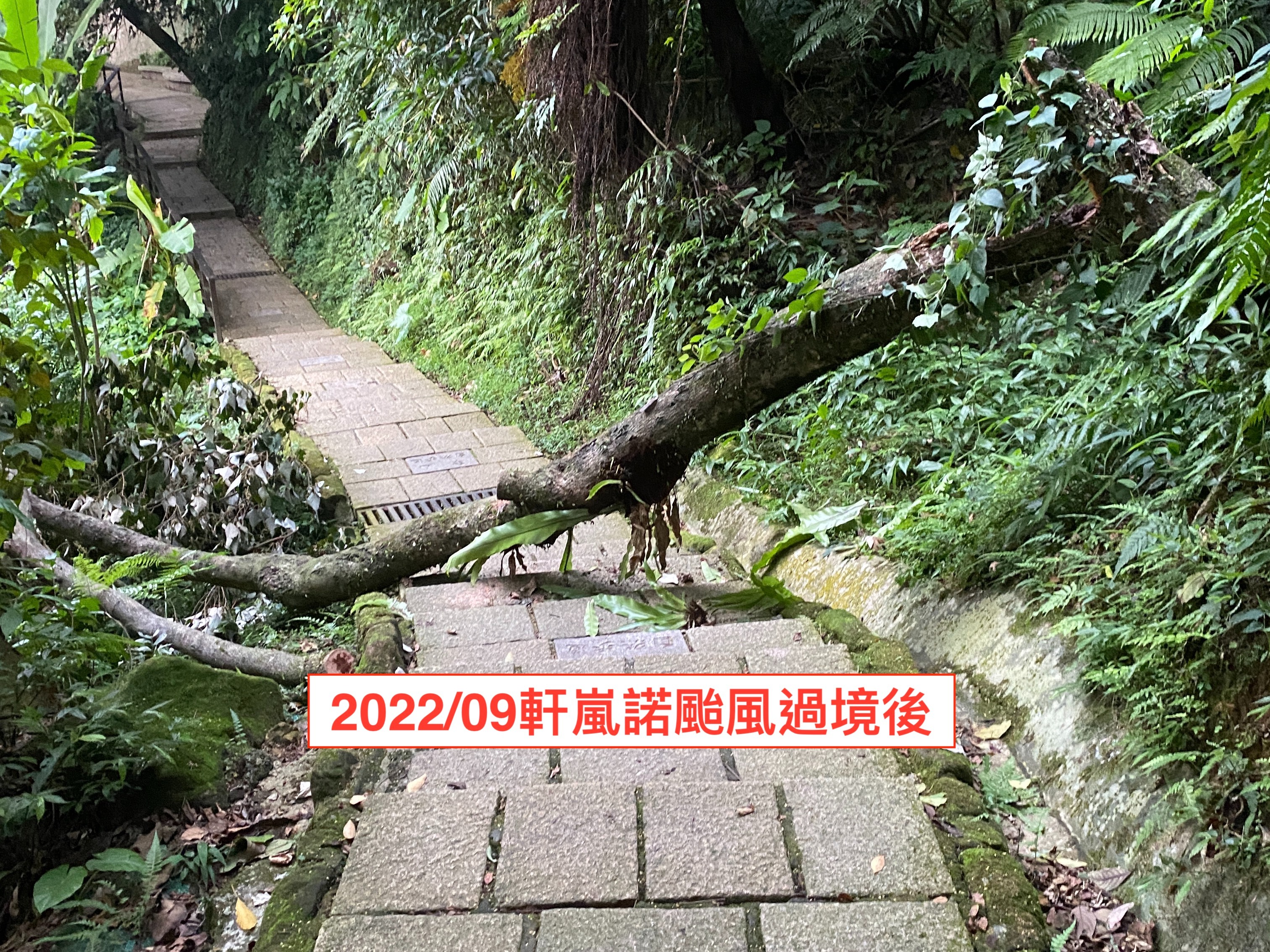 樹已經被颱風打趴,已經被清除了,也許還會在山上其他地方遇上