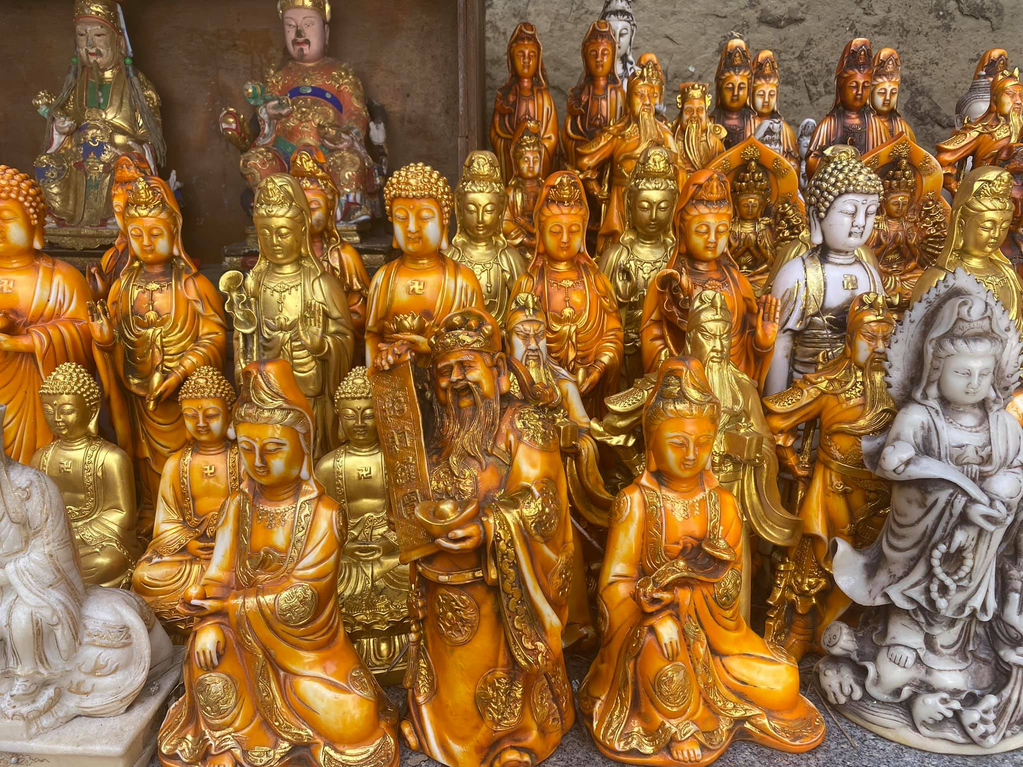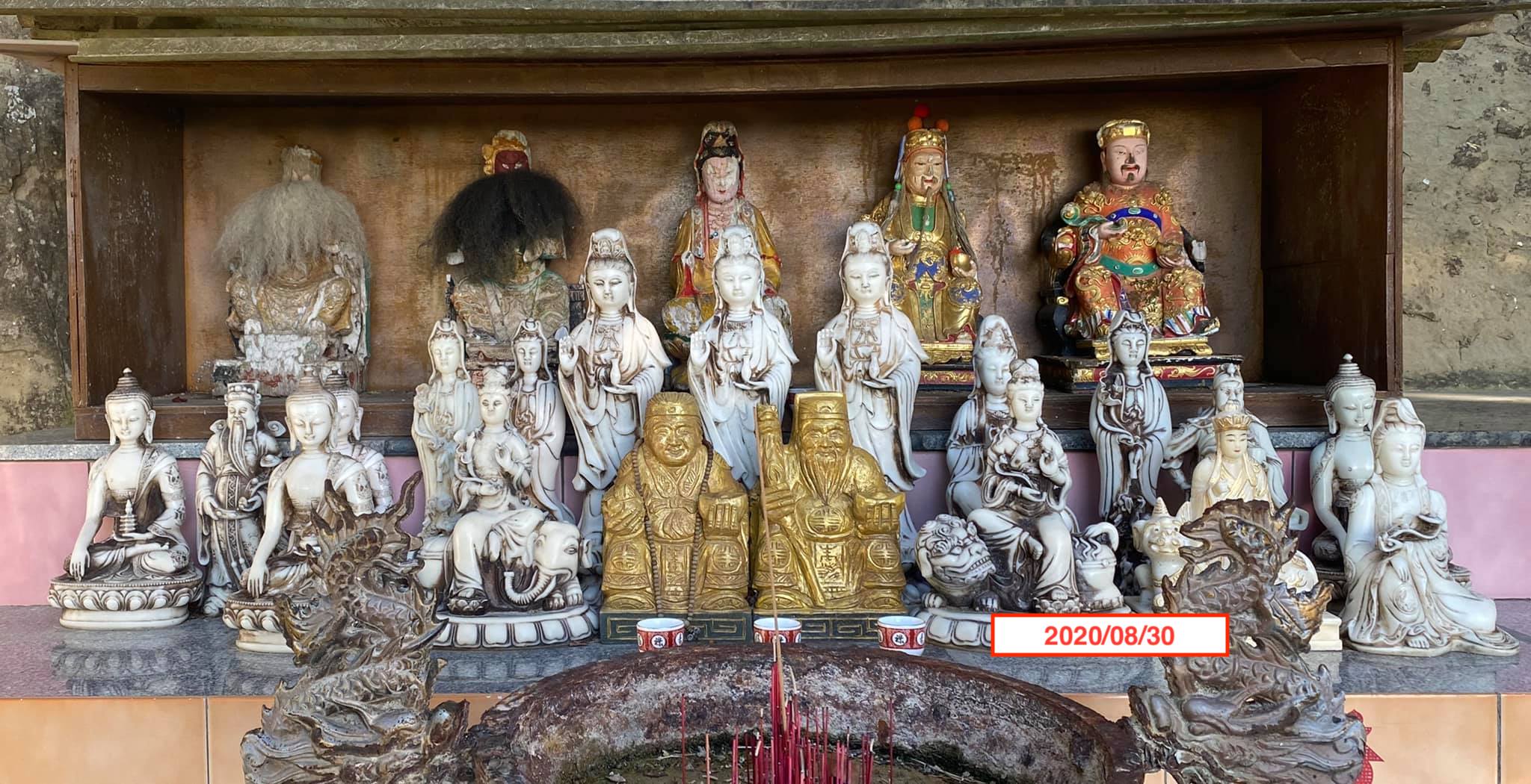 拇指山頂大石頭的正下方,一處聳立的峭壁下,有放著許多尊落難神明,幾年前還沒有那麼多,這幾年突然暴增出來好幾十尊,人類可能因為種種原因,無法繼續供奉這些 神明,也不知道該怎麼處理,可能就這樣擺放上來吧。