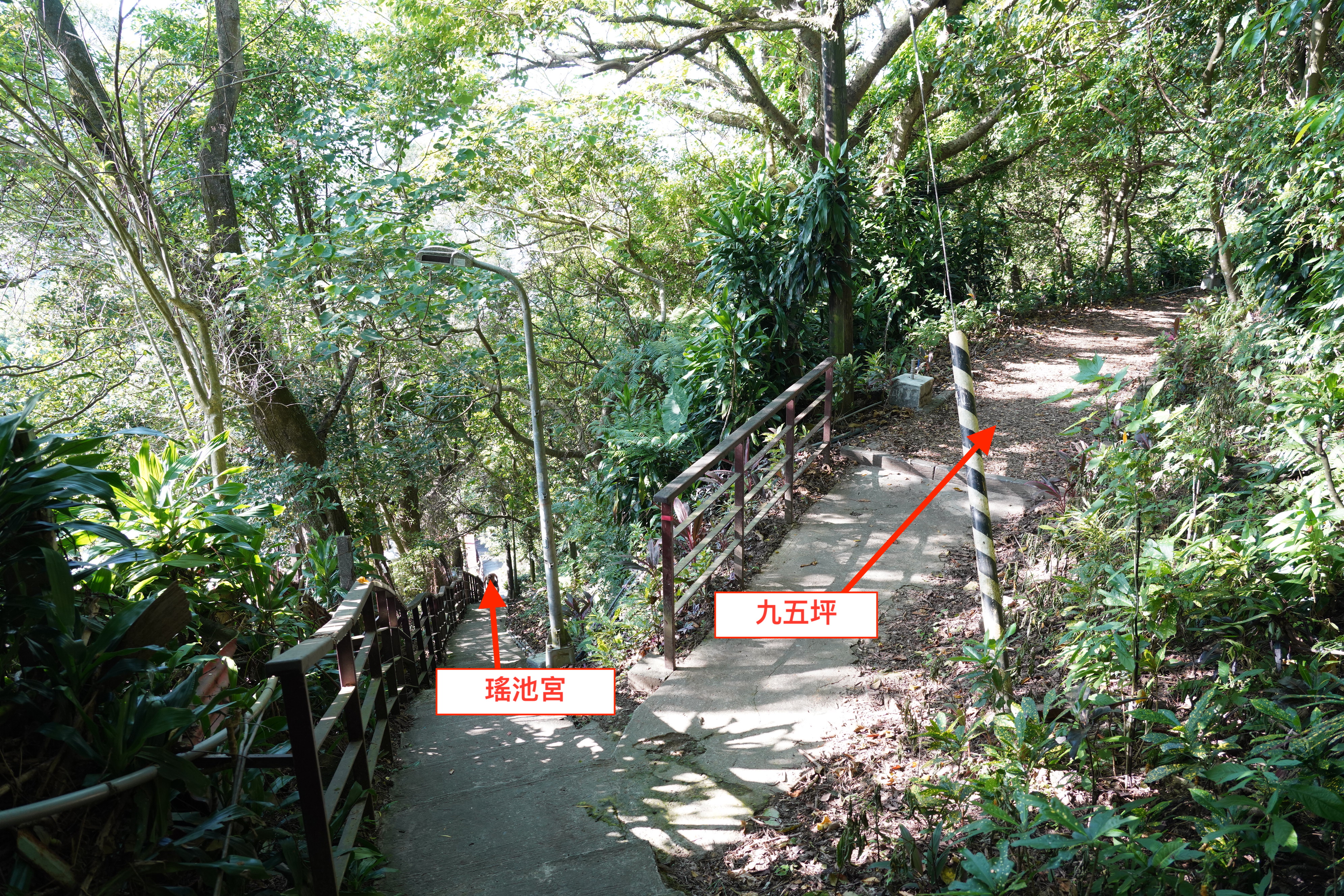 這裡聽 過大部分山友稱為九五茅蓬,比較少聽過九五坪,因為這裡就有間九五禪寺,走到底下山是往瑤池宮方向,九五坪的另一頭是復興園。