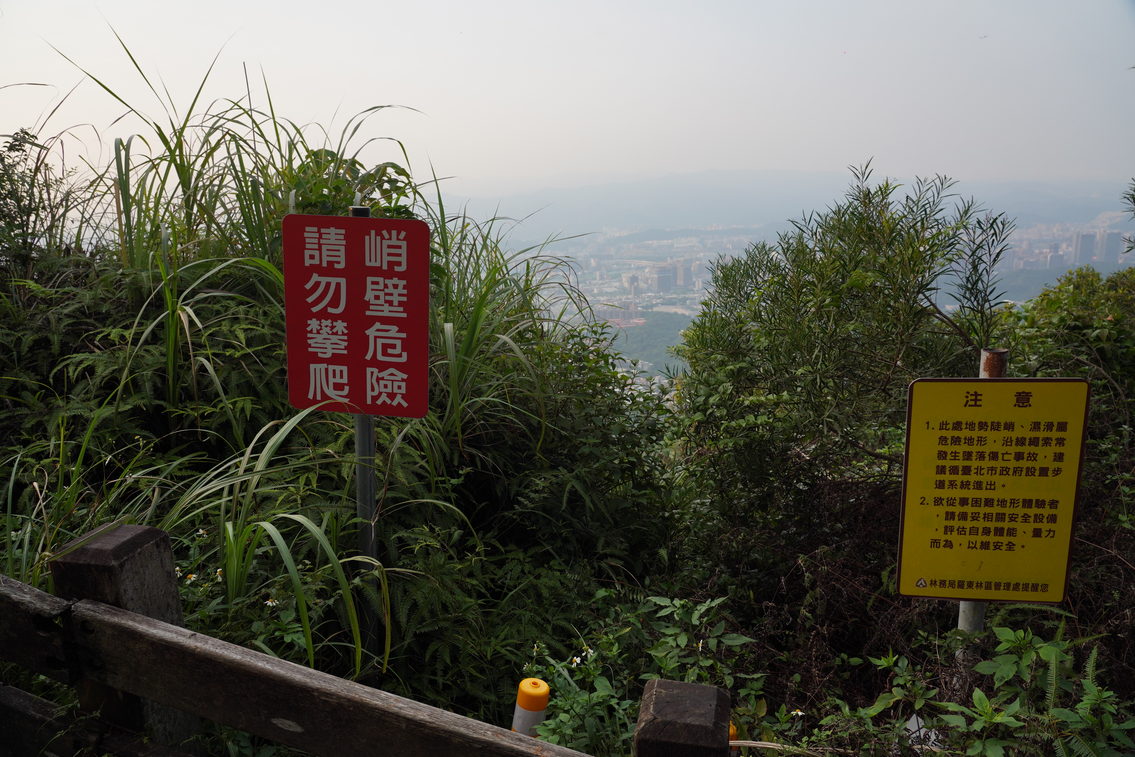 旁邊有處警告標語,那是一號繩攀岩路段,繩索都已經被拆掉了,超級危險,作者在繩子拆掉後,有一次誤闖,從下面爬上來,有好幾段真的是吊在大石壁上,進退兩難,沒防護沒繩子沒裝備,這裡也發生過很多事,嚴重建議不要進入。