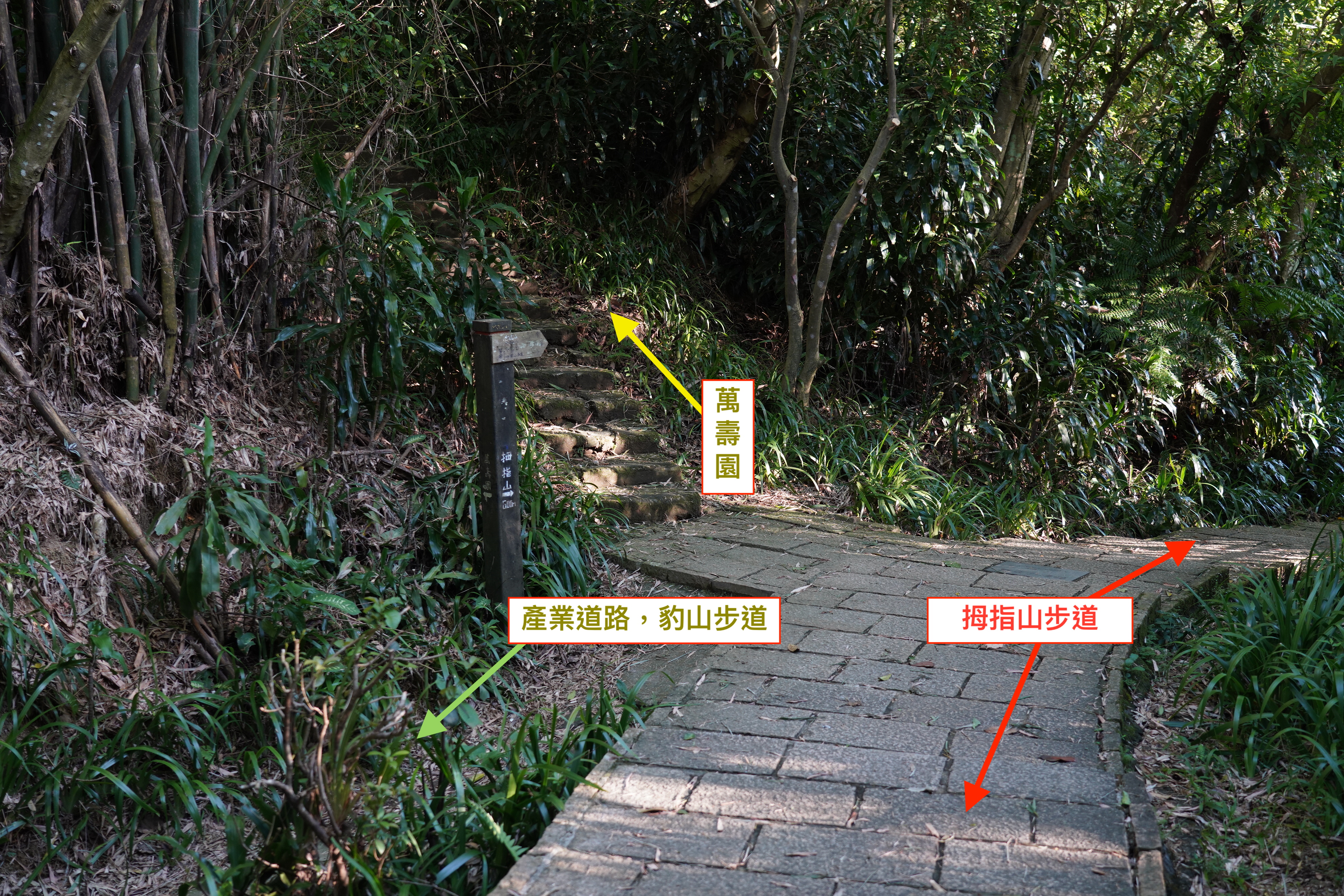 拇指山步道旁的一處明顯叉路,這邊沒來過的話,我只建議走步道,有帶一家老小的話,建議走步道。