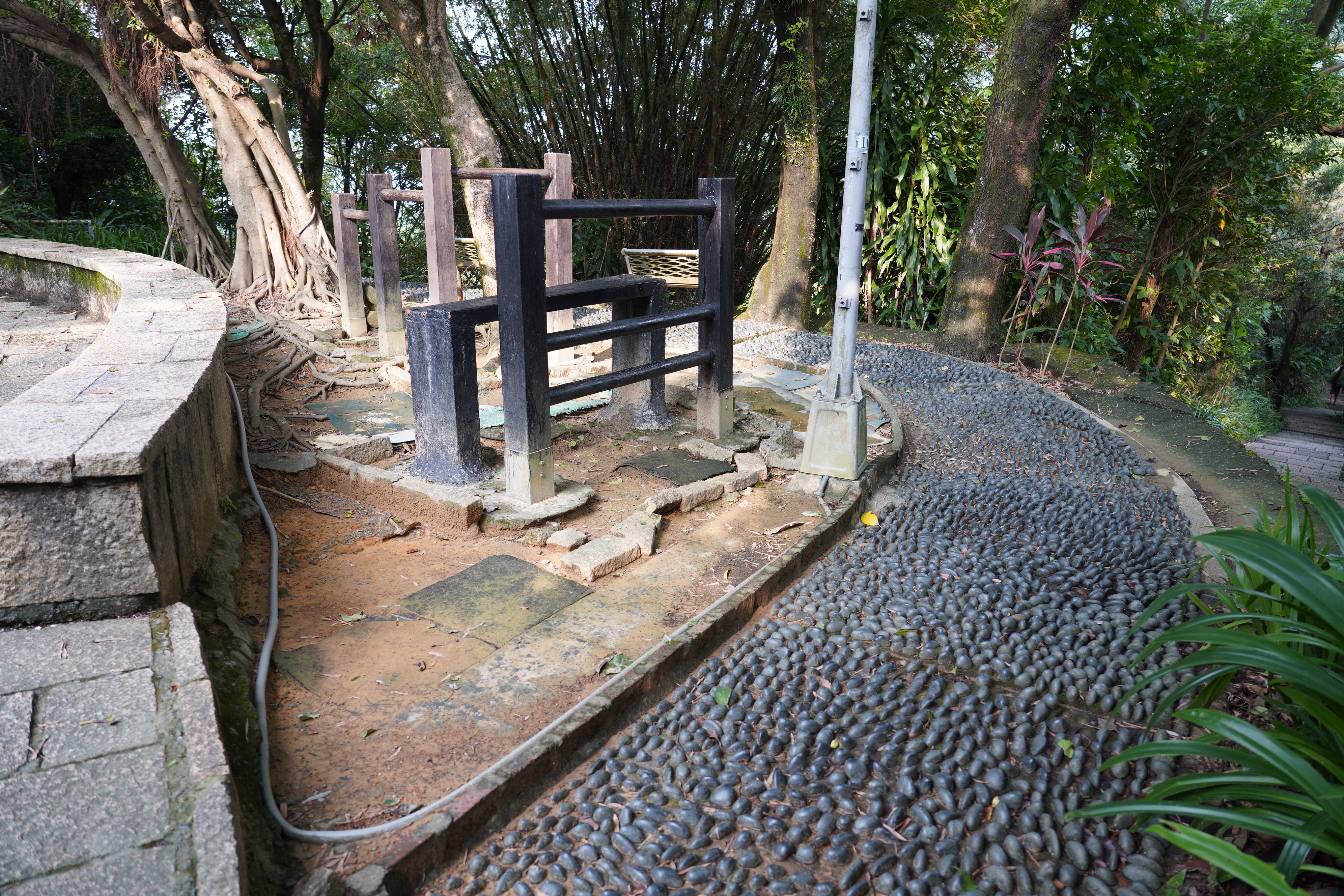 抵達長壽園前會先爬一段坡,所以很多人在此休息,平台寬廣,還蠻舒適的,旁邊有健康步道,有勇氣的可以體驗看看。