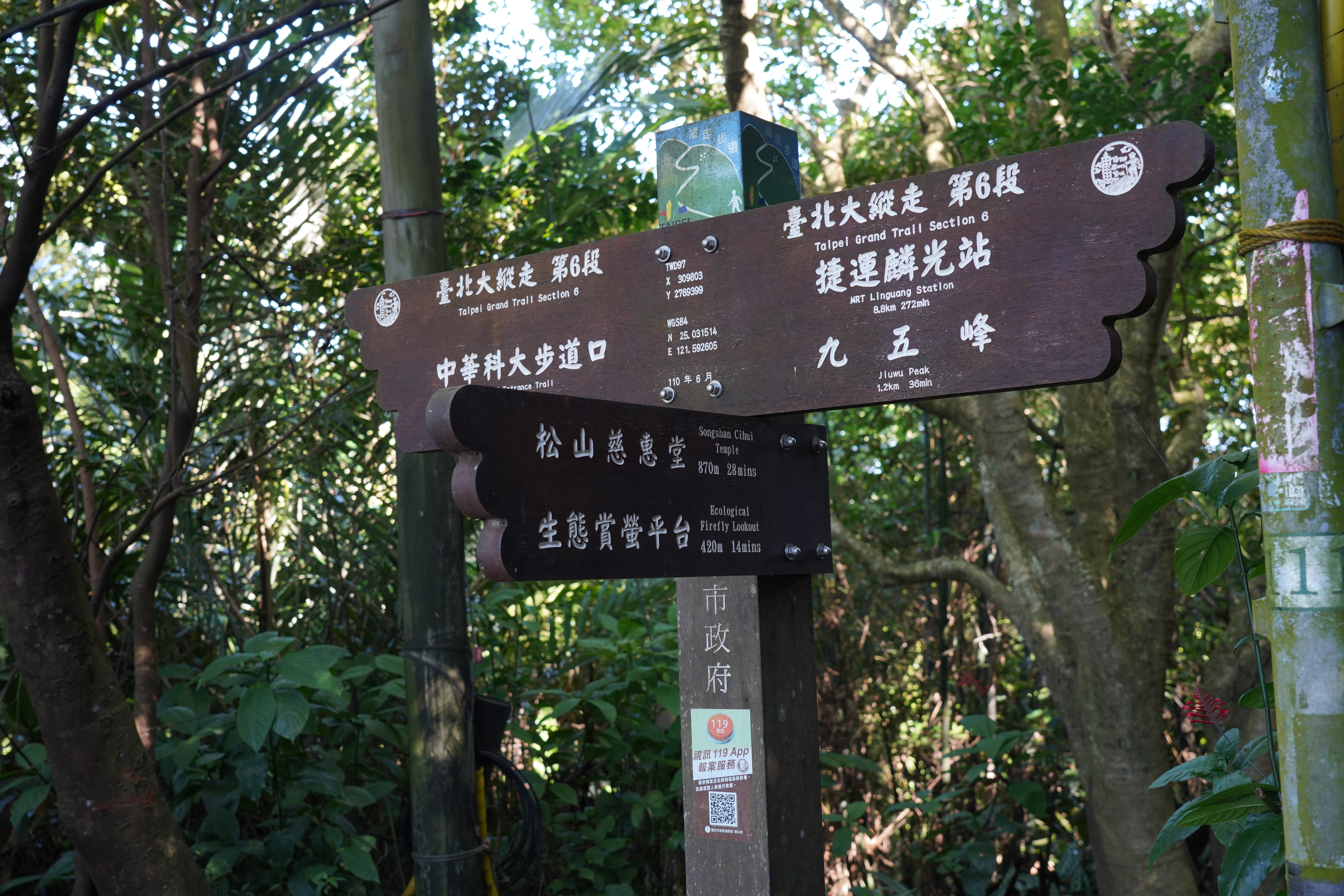 南港虎山叉這裡是南港山與虎山的交叉處,往松山慈惠堂的方向,就是虎山環狀系列的步道,如果按照指標走南港大縱走,那路線還很長,沿途上坡,沒有很陡但是也不輕鬆就是。posted in September 23rd, 2022海拔215 m展望無 區域南港山步道 分類 :叉路南港山步道