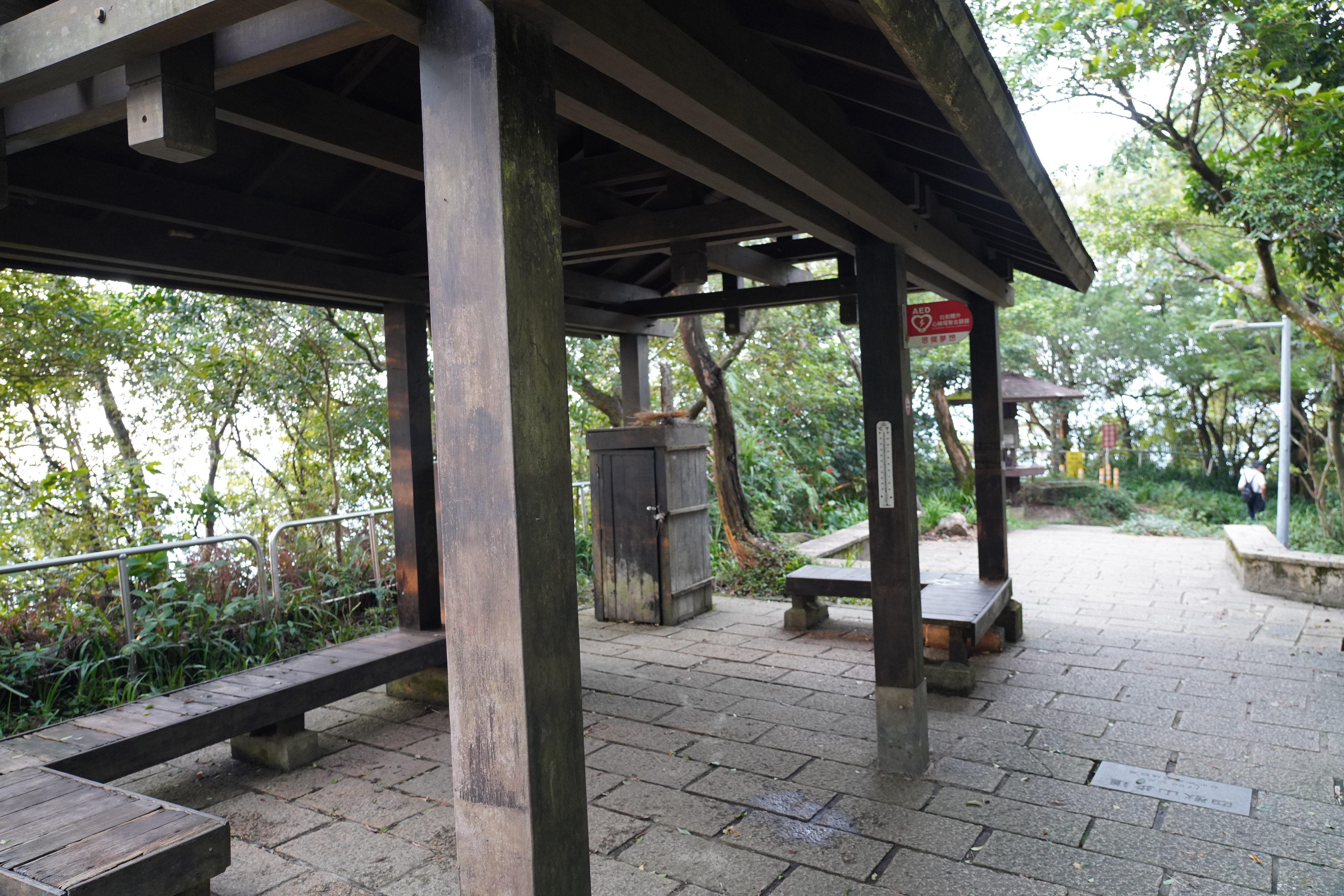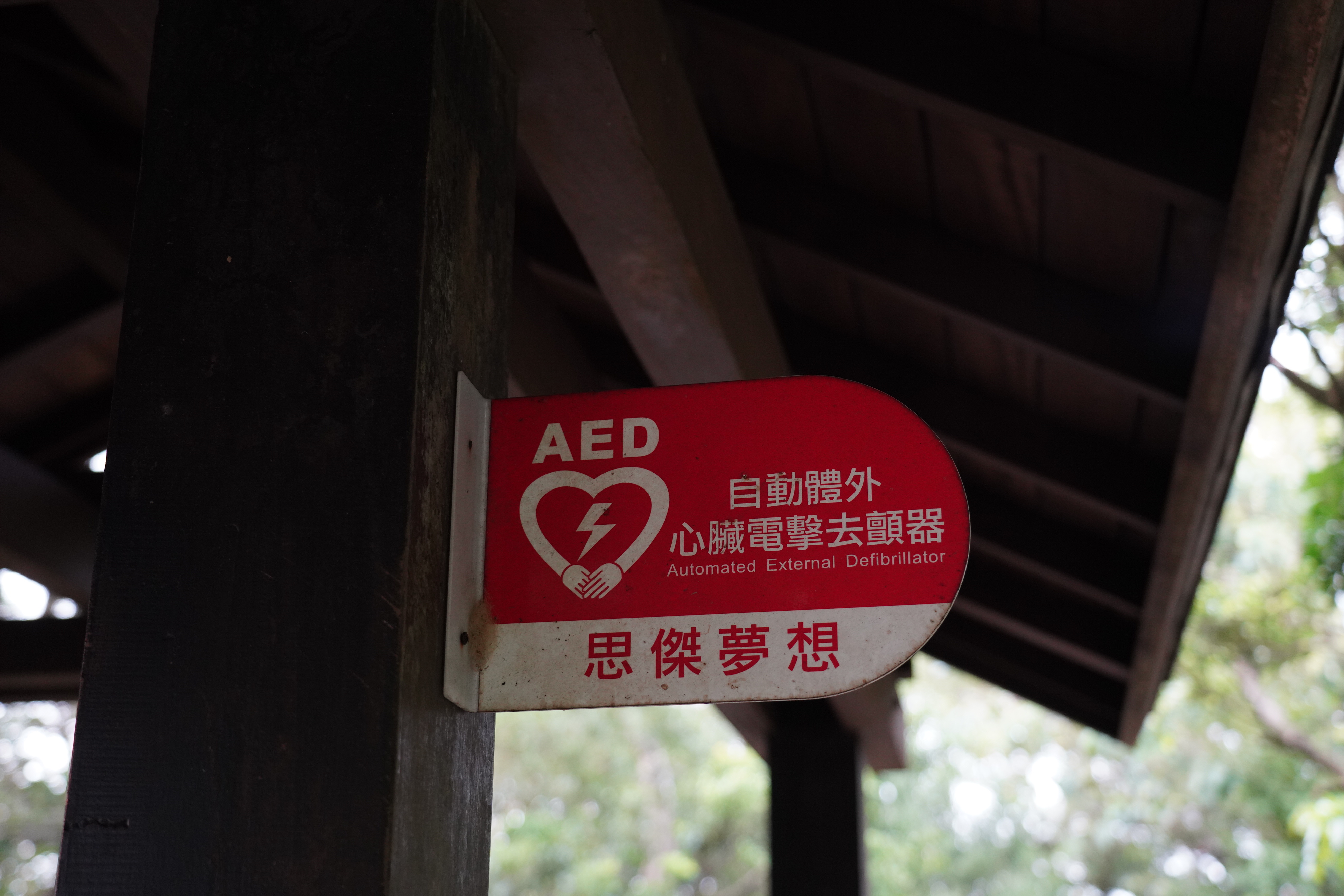 旁邊還有一座很舒適的涼亭,也有著AED電擊器,那是救命的裝置,需要有受訓過的專業人士才會用。