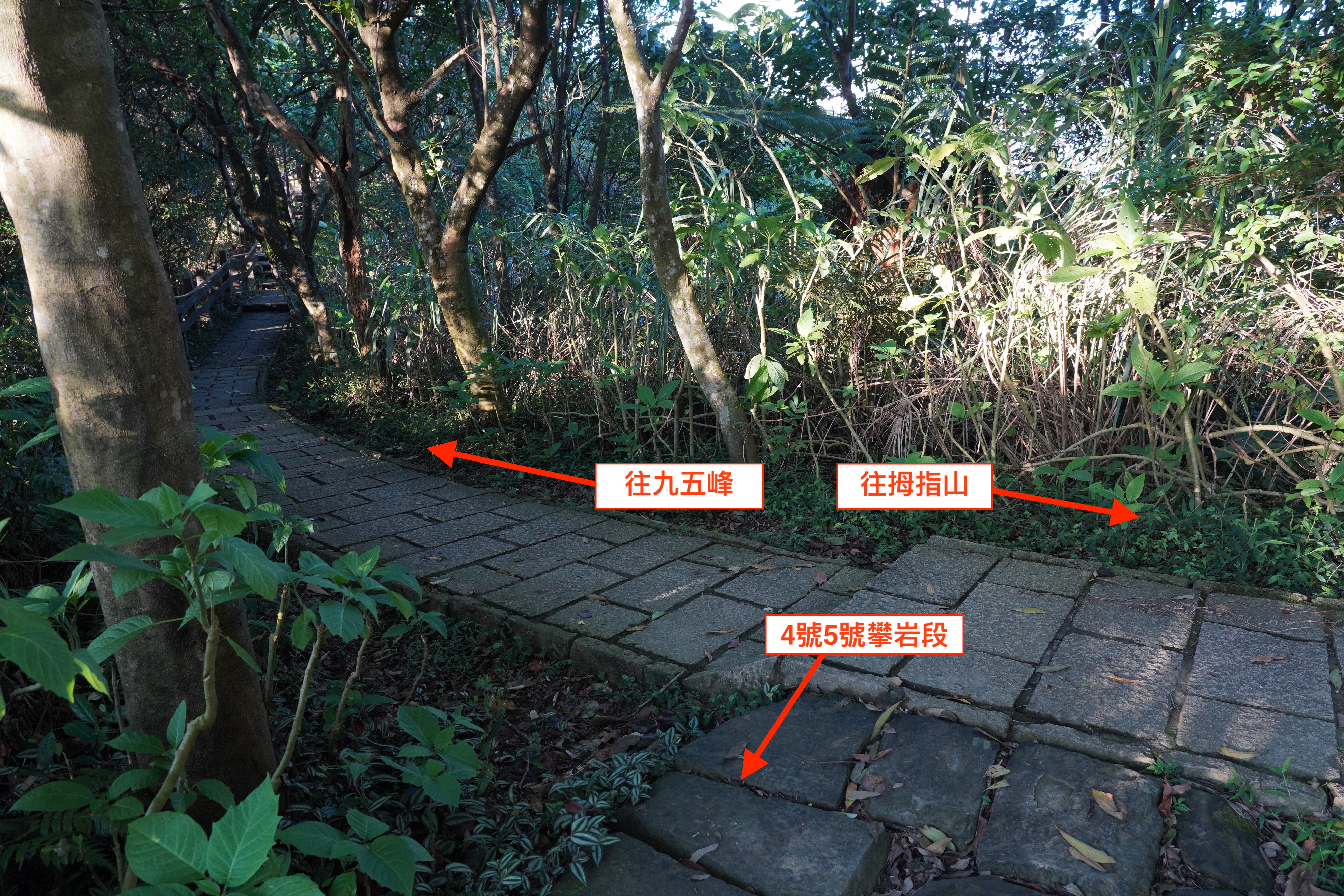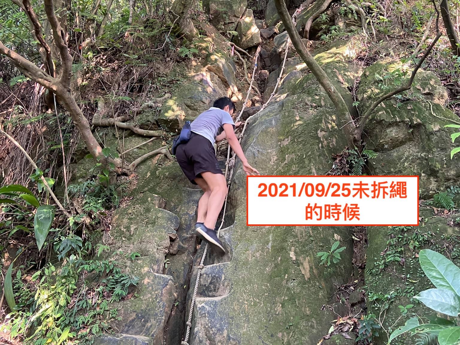 5號繩的起點為萬壽園,終點為勝利崗,海拔從350-370約 上升20公尺的峭壁