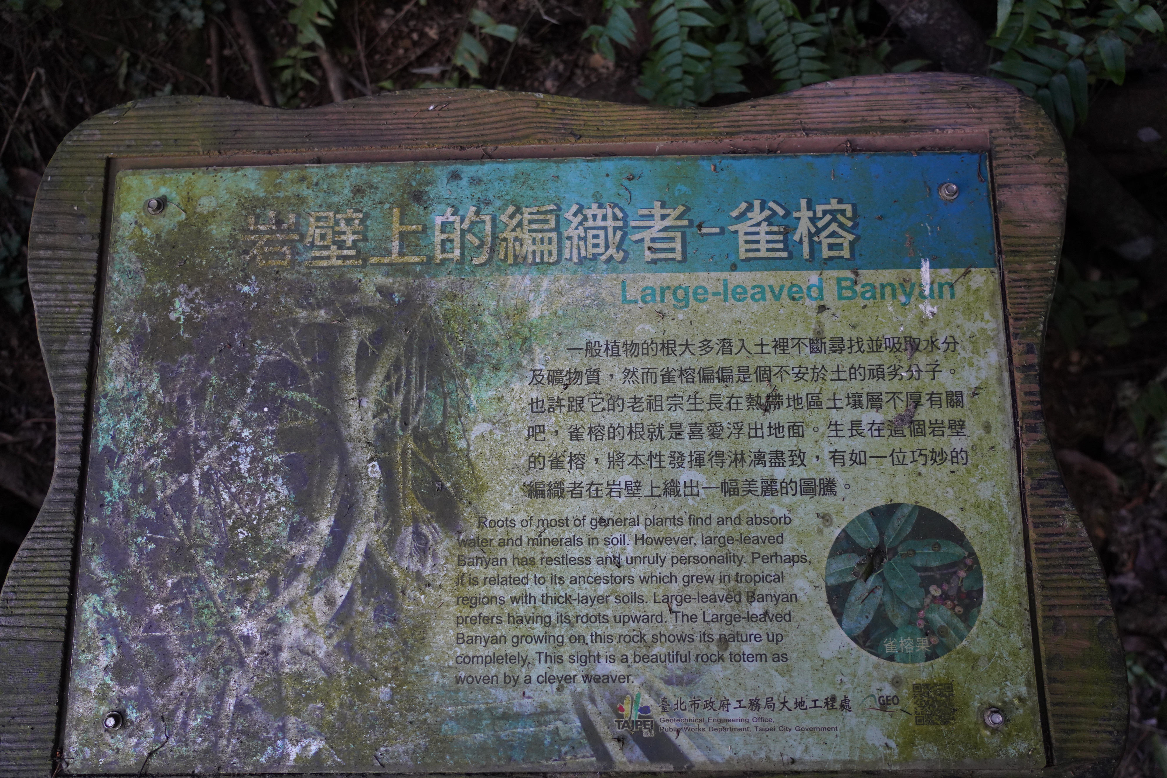 佈滿岩壁的雀榕咱們信義區就是大石頭很多,整個象山四處可以見到大石頭,這棵雀榕長滿了大岩壁,還蠻特別壯觀的,位置在市療步道上,也很靠近六巨石了,如果有來六巨石,不妨在附近找找這個大榕樹吧。posted in September 27th, 2022海拔155 m展望無 區域市療步道 分類 :市療步道象山環