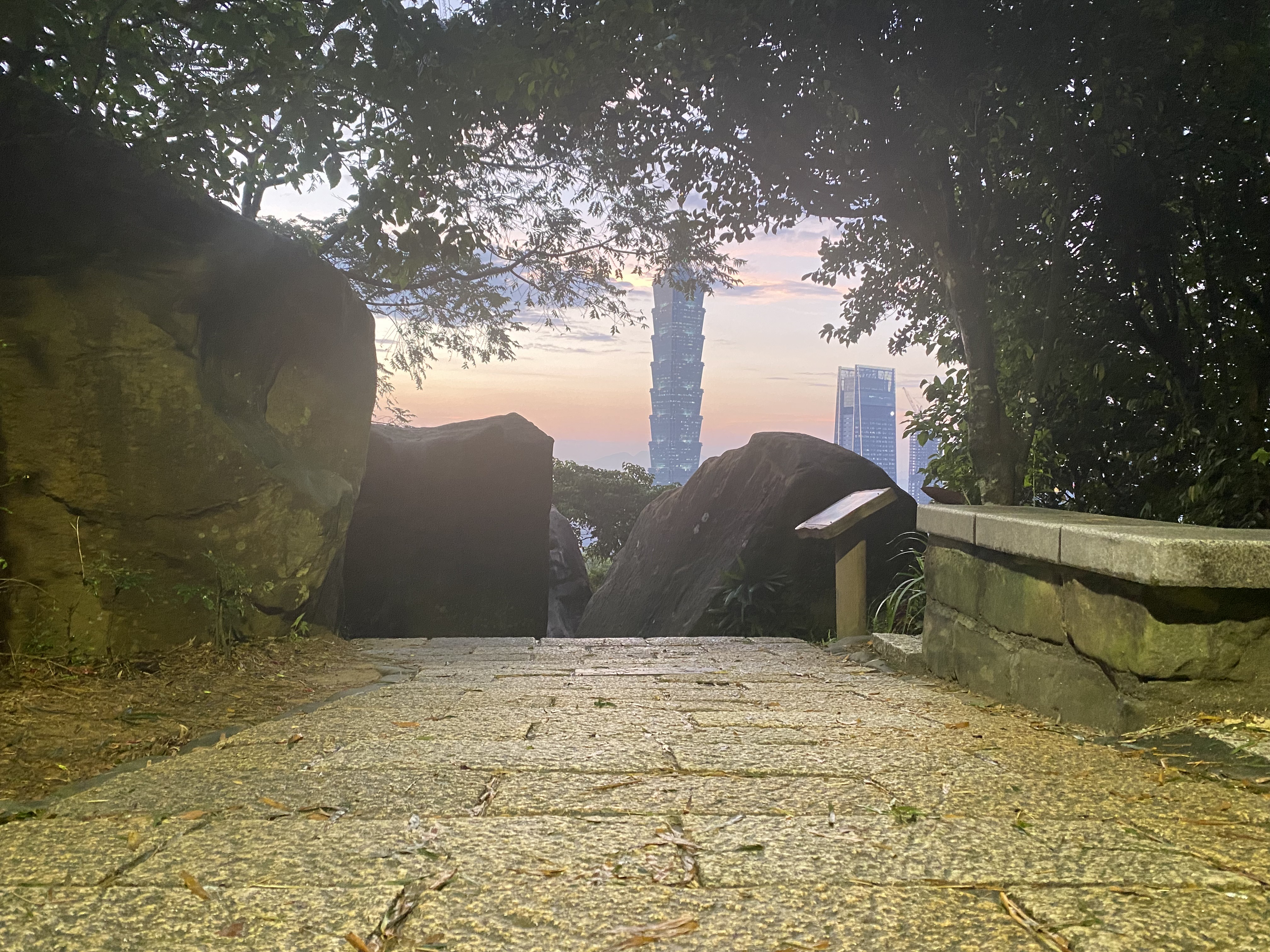 觀賞完六巨石後,若不趕時間,可以再順著步道往前走,大約五分鐘可以到達象山頂,象山頂再過去一點還有個超然亭,那裡是看台北風景最棒的地方。