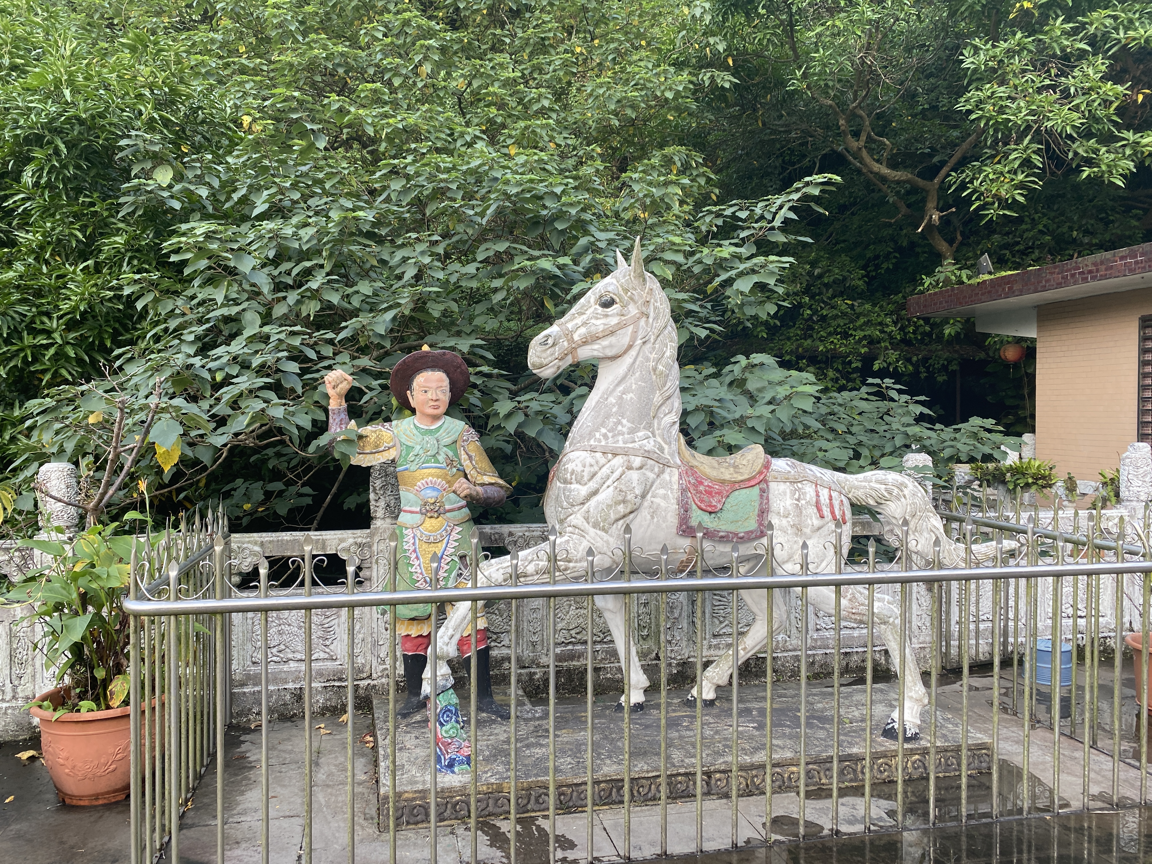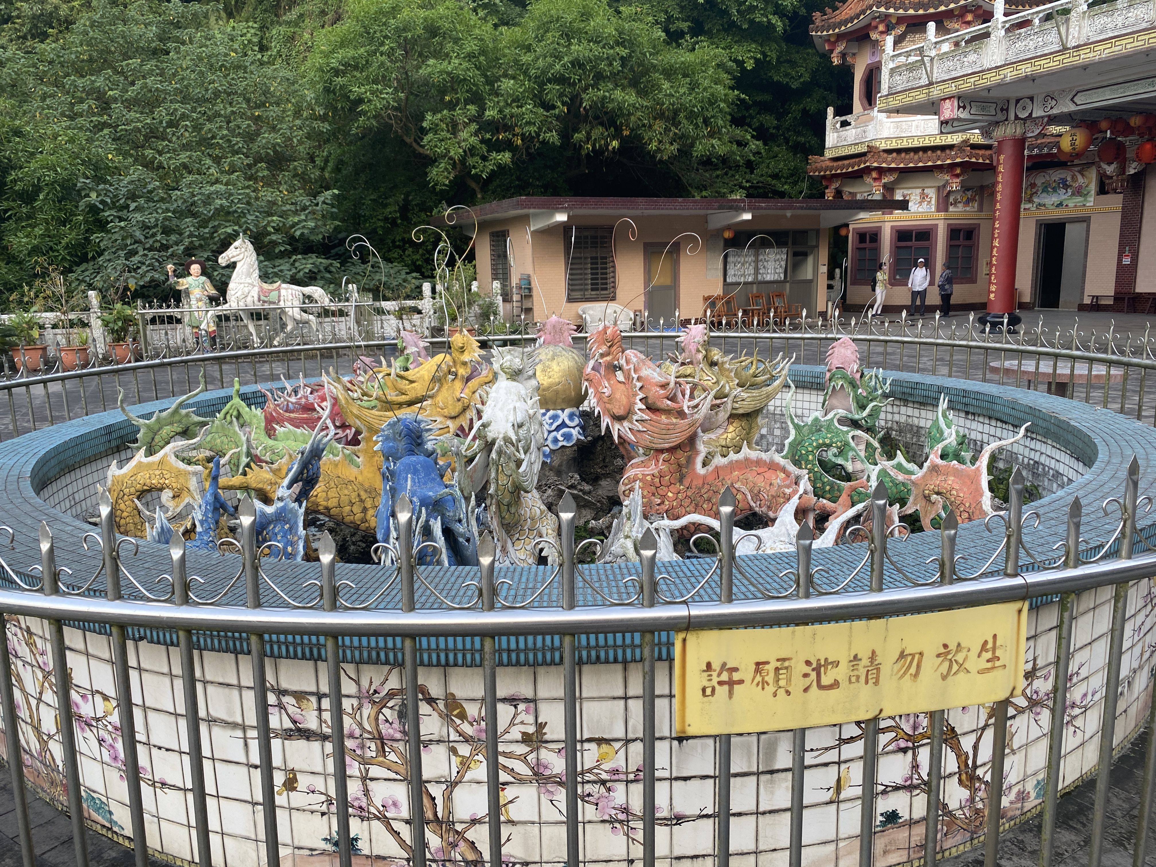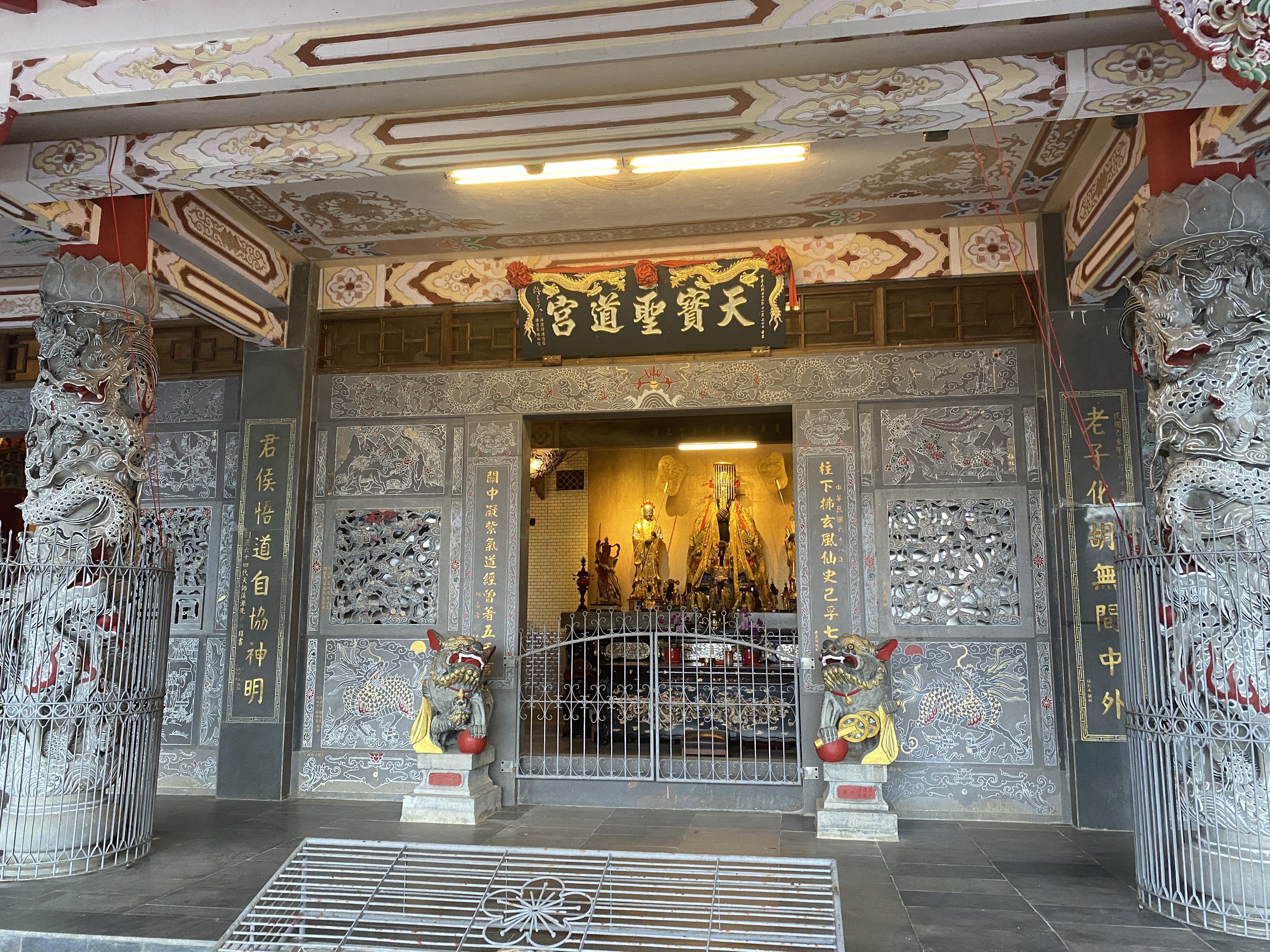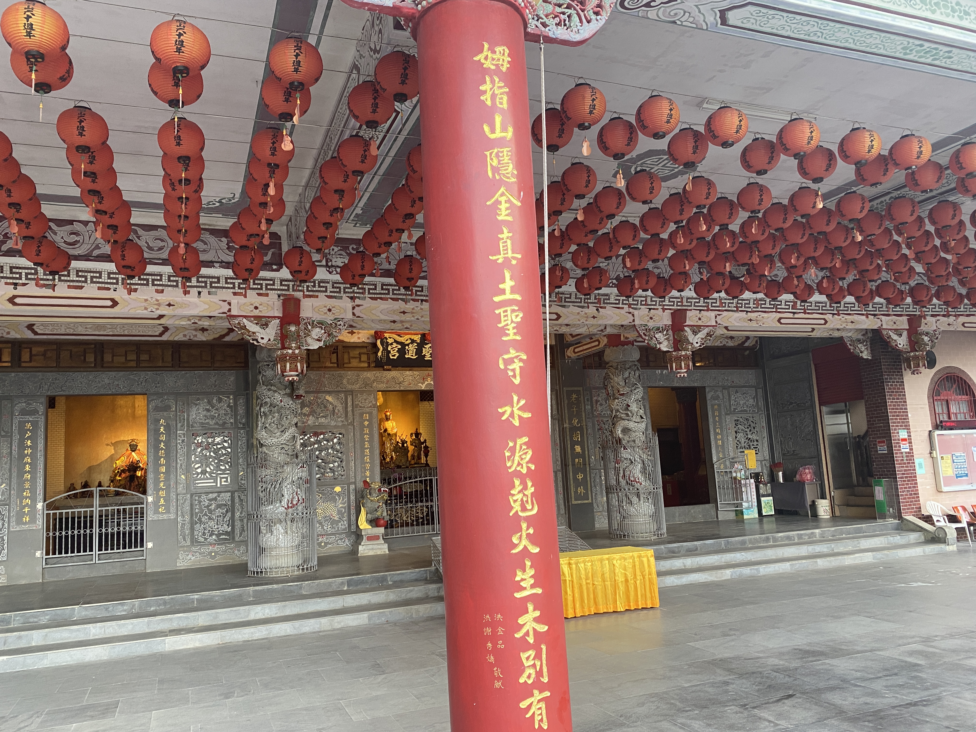天寶聖道宮位置在永春崗最靠近山壁的地方,第一次來的時候,被他的建築震驚到,怎麼會有這麼大的一間廟在山裡面,又被二座山給包住,一邊是象山,另一邊是獅山,這裡好多驚奇有趣的事物可以參觀,廟庭前面也有一塊舒服平坦的地。